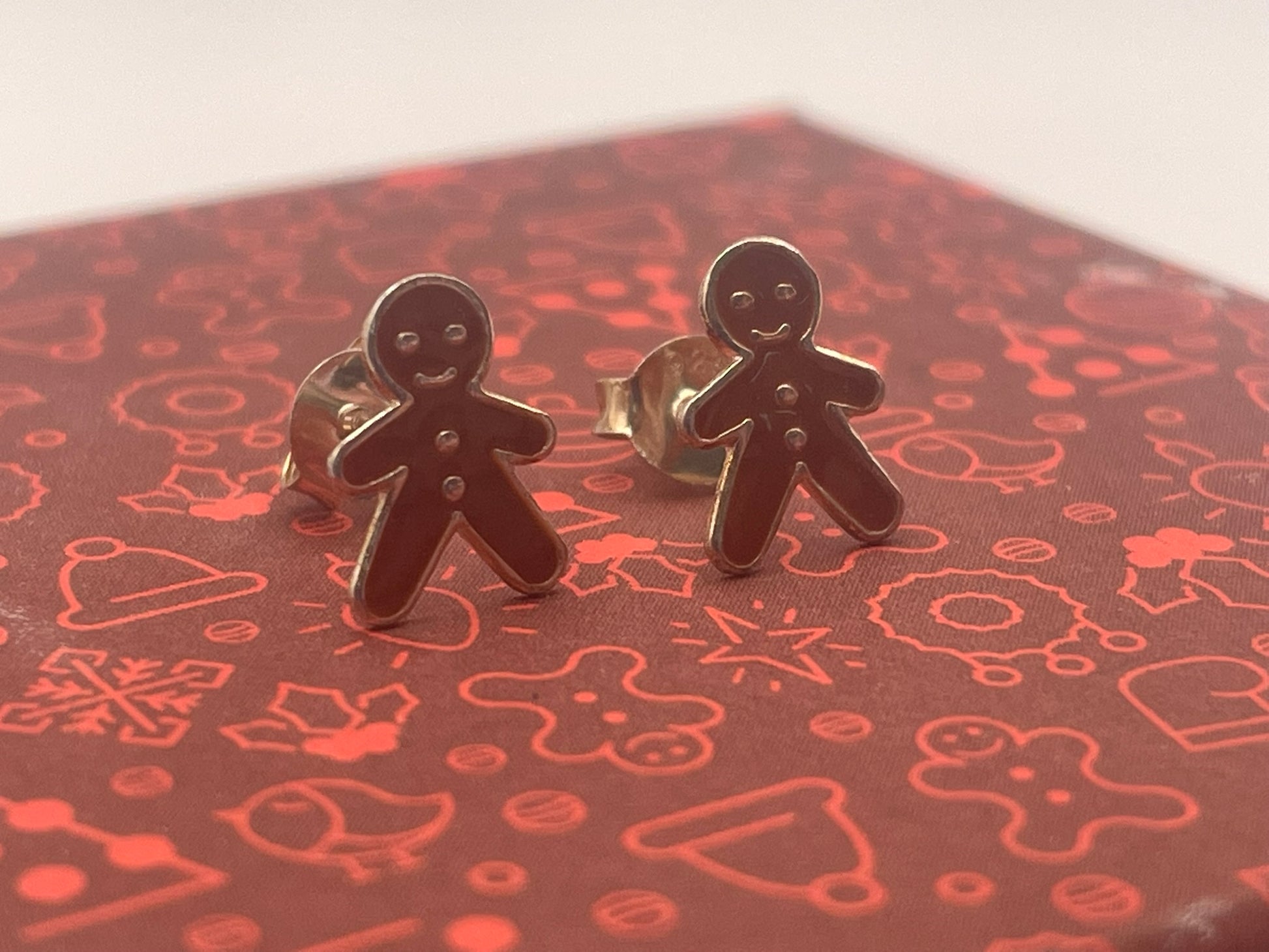 These charming sterling silver gingerbread man earrings combine festive appeal with refined craftsmanship. Each pair features meticulously detailed enamel work that brings the classic holiday motif to life, with vibrant colours and precise finishing. Designed for pierced ears, they offer a delightful way to add seasonal character to any ensemble. Perfect for those who appreciate handcrafted jewellery with personality, these earrings strike an elegant balance between whimsy and sophistication.